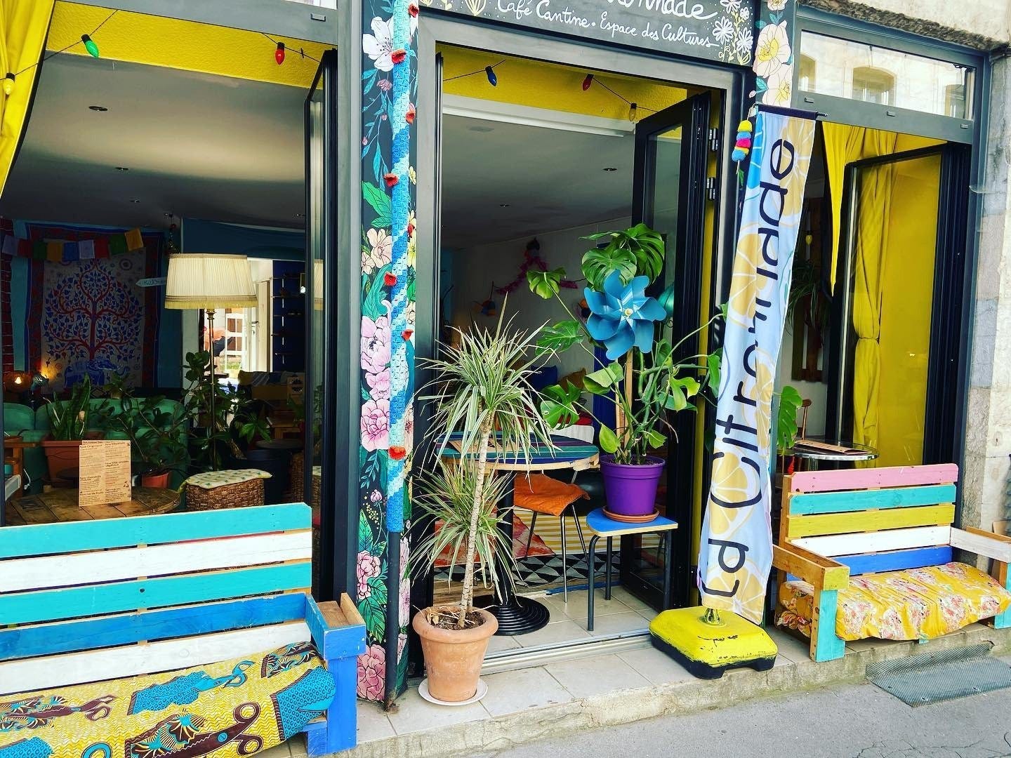 En effet, ce qui fait surtout le charme de l’établissement, c’est son aspect multiculturel. Un cosmopolitisme qui se retrouve dans l’assiette, avec des plats et des saveurs venus des quatre coins du monde (saveurs marocaines, aztèques, américaines, touareg, indiennes, japonaises, etc.), mais dans le concept du lieu tout entier : la Citronnade propose aussi une programmation musicale du monde entier, un espace friperie, des soirées d’échanges linguistiques, un lieu de coworking, un espace cosy etc.