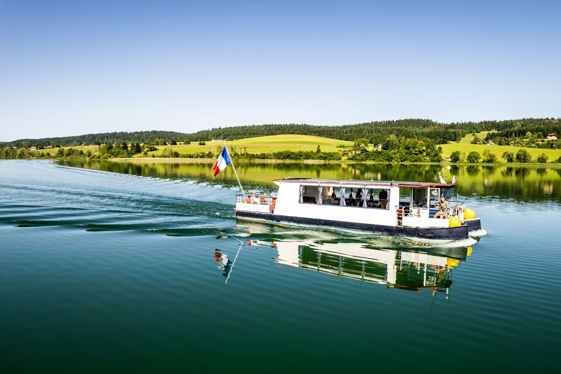 Depuis Villers-le-Lac, je t’invite à prendre le bateau pour une croisière fluviale exceptionnelle sur le Doubs. Pendant plus de deux heures, tu pourras profiter d’une balade dans le parc naturel régional du Doubs Horloger, avec ses canyons, ses eaux calmes, ses forêts sauvages, et bien sûr sa fameuse cascade de 27 mètres de hauteur, le Saut du Doubs.